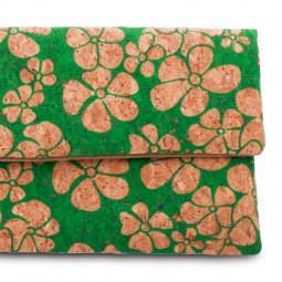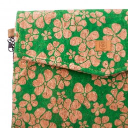Bodycross cork lady bag. Green flowers pattern. On the front, a beautiful colourful flowers pattern, detailed with rustic natural cork, as well as on the back.